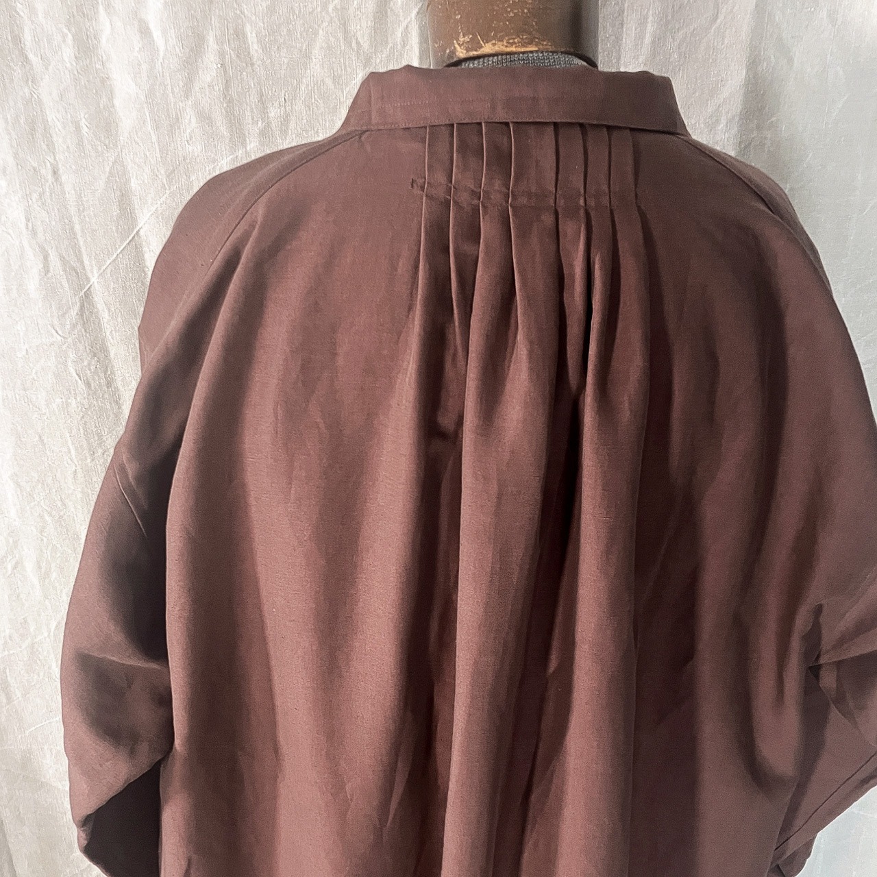 スーピマ80/2、リネン40/1糸を高密度に打ち込んだバックサテン。一般的なイメージのバックサテンとは異なる、滑らかで高級感の溢れた素材を使用。