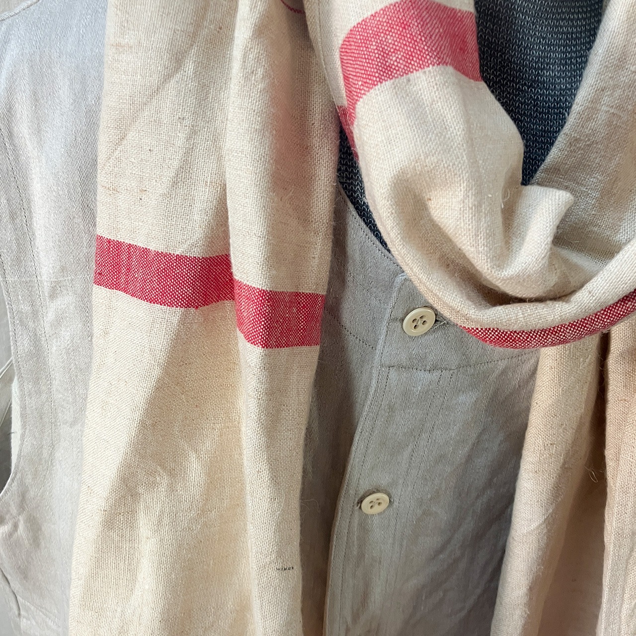着用、洗いを繰り返すことで白度が増し、柔らかくなっていくアンティークリネン独特の経年劣化が魅力的。