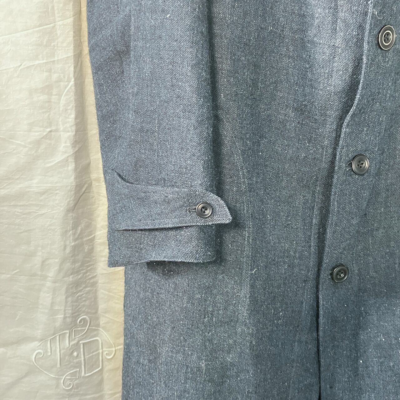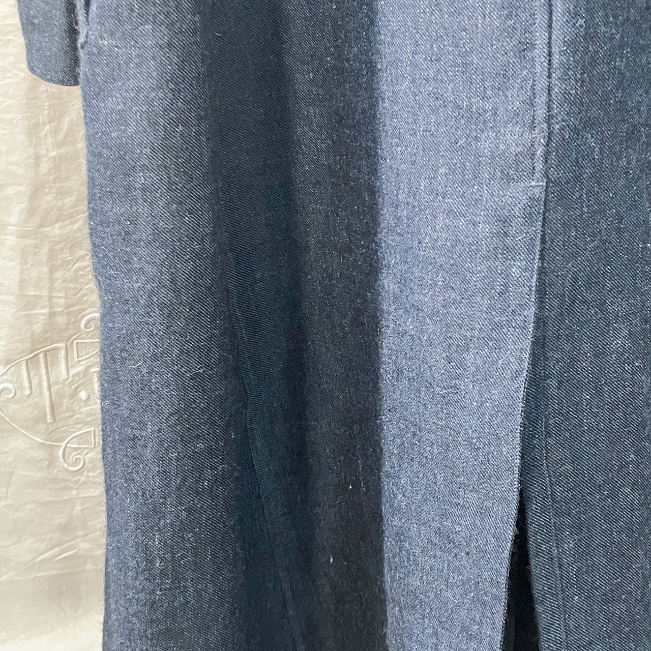 先染めの異色トップ糸の組み合わせによる奥深い色合い、中肉で高密度に織られたしっかりとした素材感でリネン特有のドレープ感もしっかりと感じる独特の素材感、風合いが魅力。